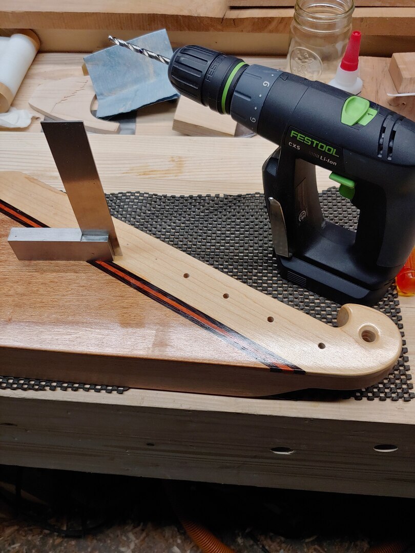 After finishing, I added the steel bar to the stock, drilled the holes for the zither pins, and added strings.
